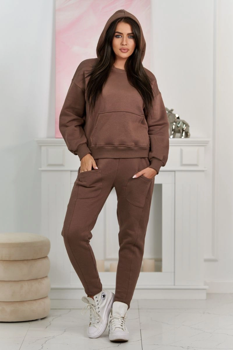 Turkish set consisting of a hoodie and pants with pockets is a combination of style, comfort and functionality. A hoodie is not only fashionable, but also practical in various situations. The hood provides additional protection against wind and rain, and adds character to the whole set. It is worth paying attention to details such as an adjustable drawstring in the hood and elastic cuffs on the sleeves and bottom of the sweatshirt, which ensure a perfect fit. Pants with pockets are a great complement to this set. The side pockets are practical, allowing you to store small items such as keys or a phone. Elastic waist with adjustment ensures comfort and fit. This Turkish set is a perfect solution for various occasions. It can be used during outdoor activities, at the gym, or simply during leisure time. Undoubtedly, it combines aesthetics, comfort and practicality, creating a complete look for people who value both fashion and functionality in clothes. The set is made of insulated material. The size is universal and will be suitable for ladies in size S, M or L.