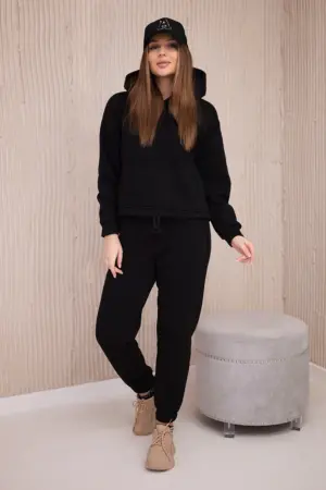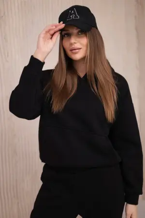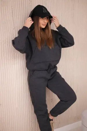 We present you an insulated set of sweatshirts and pants. The sweatshirt has a hood and a binding at the bottom. Pants with pockets. The set is made of insulated material. The size is universal and will be suitable for ladies in sizes S, M or L.