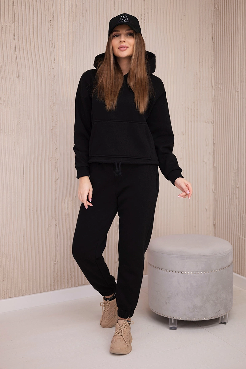 We present you an insulated set of sweatshirts and pants. The sweatshirt has a hood and a binding at the bottom. Pants with pockets. The set is made of insulated material. The size is universal and will be suitable for ladies in sizes S, M or L.