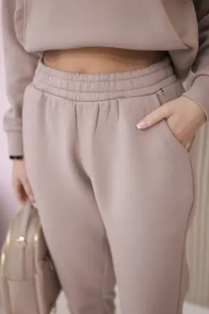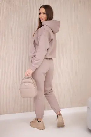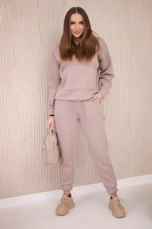 We present you an insulated set of sweatshirts and pants. The sweatshirt has a hood and a binding at the bottom. Pants with pockets. The set is made of insulated material. The size is universal and will be suitable for ladies in sizes S, M or L.