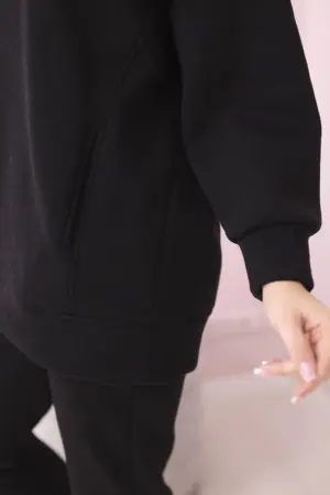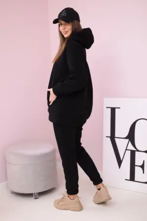 We present you a set of sweatshirts and trousers with the inscription. The sweatshirt has a hood and pockets. The set is made of insulated material. The size is universal and will be suitable for ladies in sizes S, M or L.