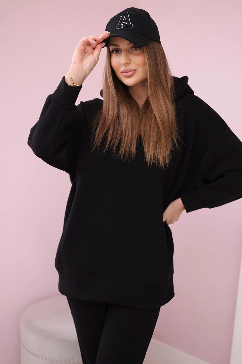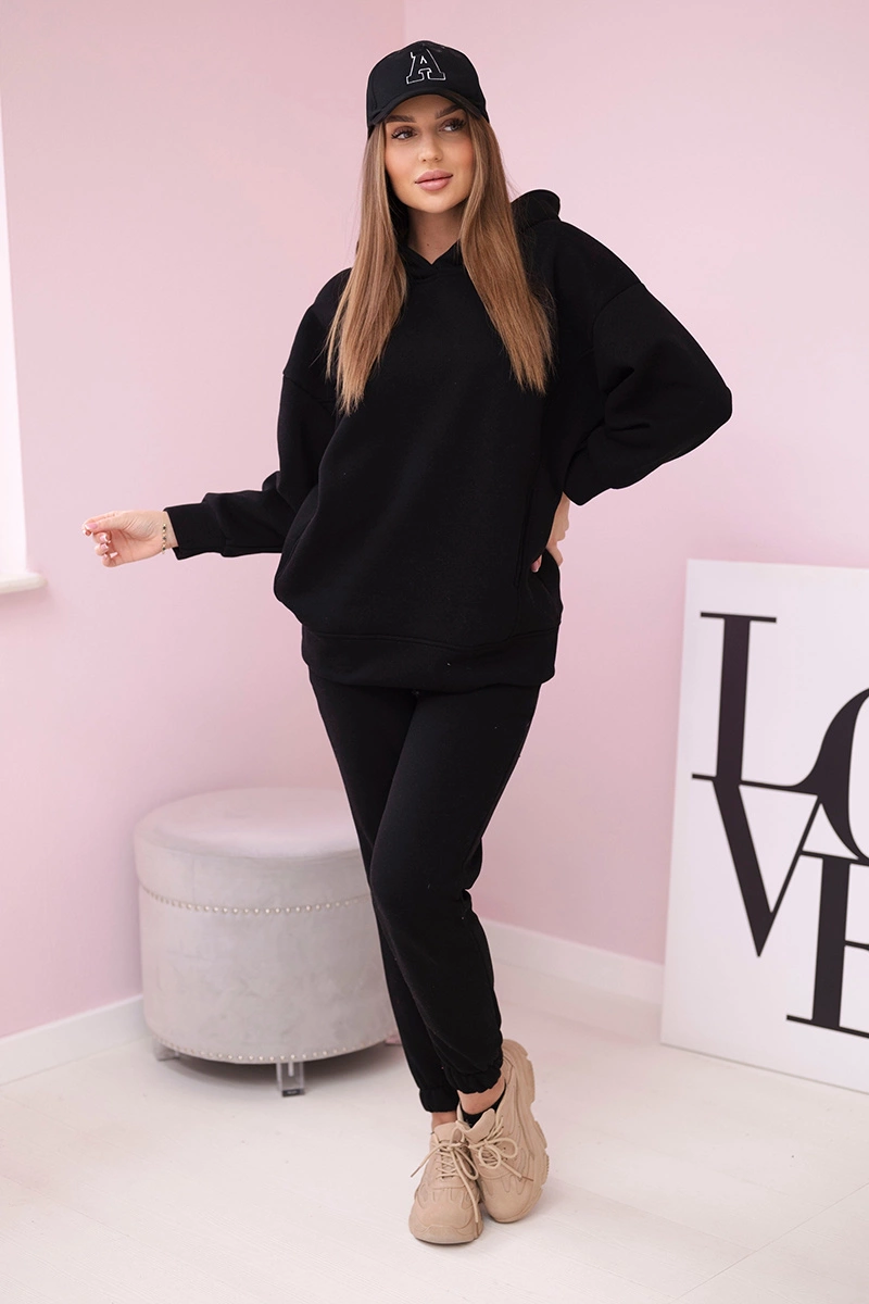 We present you a set of sweatshirts and trousers with the inscription. The sweatshirt has a hood and pockets. The set is made of insulated material. The size is universal and will be suitable for ladies in sizes S, M or L.