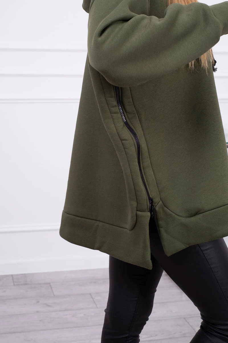 We present you a warm sweatshirt. The sweatshirt has a hood and a zipper on one side. The sweatshirt is made of insulated material. The size is universal and will be suitable for ladies wearing sizes S, M or L.