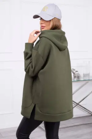We present you a warm sweatshirt. The sweatshirt has a hood and a zipper on one side. The sweatshirt is made of insulated material. The size is universal and will be suitable for ladies wearing sizes S, M or L.