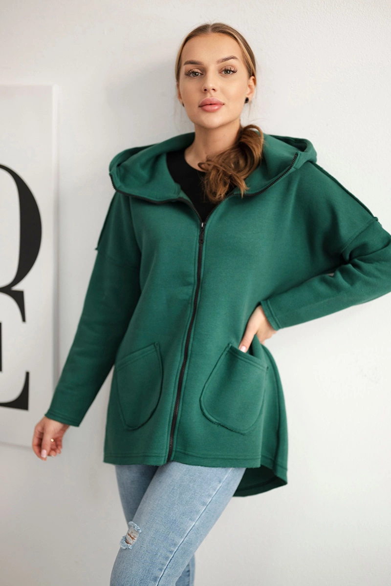 We present you an insulated sweatshirt. The sweatshirt has a hood, longer back and a pocket. The sweatshirt is made of insulated material. The size is universal and will be suitable for ladies wearing sizes S, M or L.