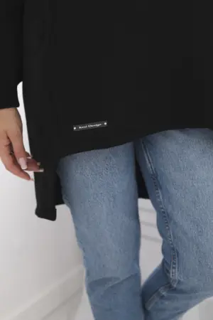 We present you an insulated sweatshirt. The sweatshirt has a hood, longer back and a pocket. The sweatshirt is made of insulated material. The size is universal and will be suitable for ladies wearing sizes S, M or L.