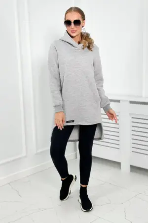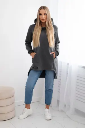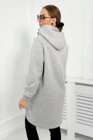 We present you an insulated sweatshirt. The sweatshirt has a hood, longer back and a pocket. The sweatshirt is made of insulated material. The size is universal and will be suitable for ladies wearing sizes S, M or L.