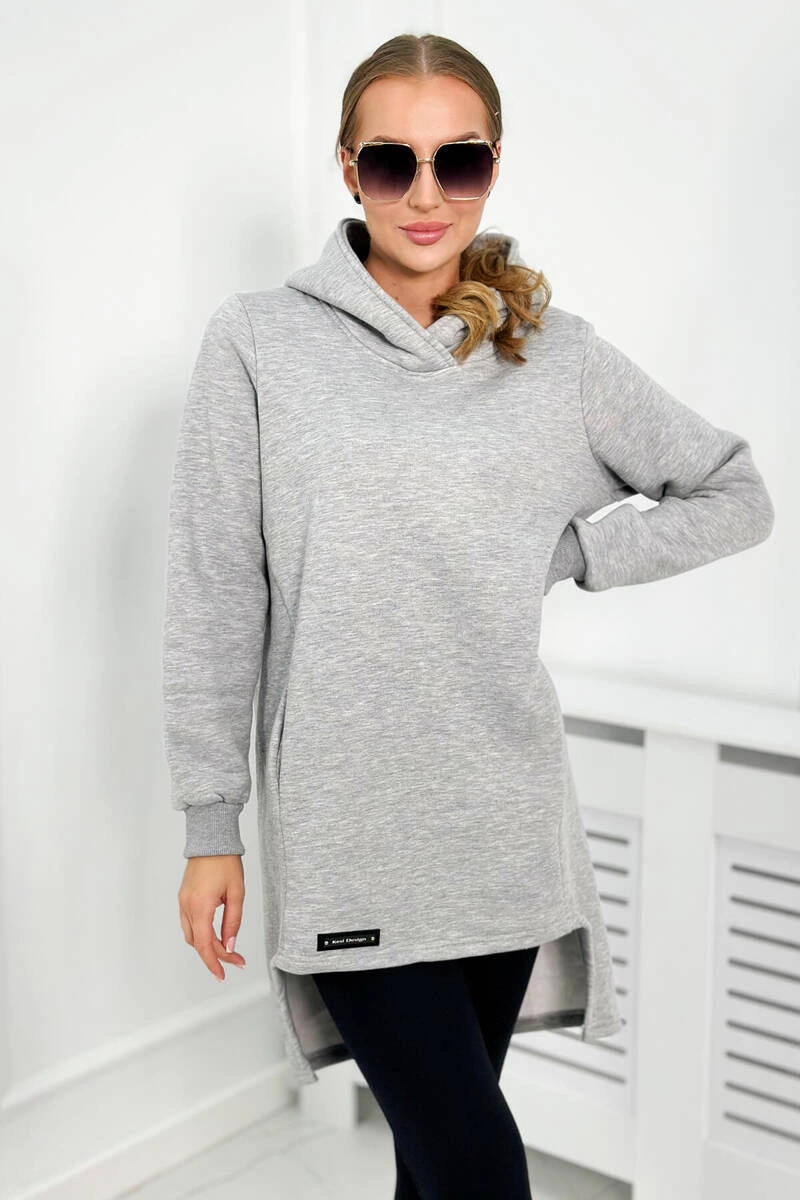 We present you an insulated sweatshirt. The sweatshirt has a hood, longer back and a pocket. The sweatshirt is made of insulated material. The size is universal and will be suitable for ladies wearing sizes S, M or L.