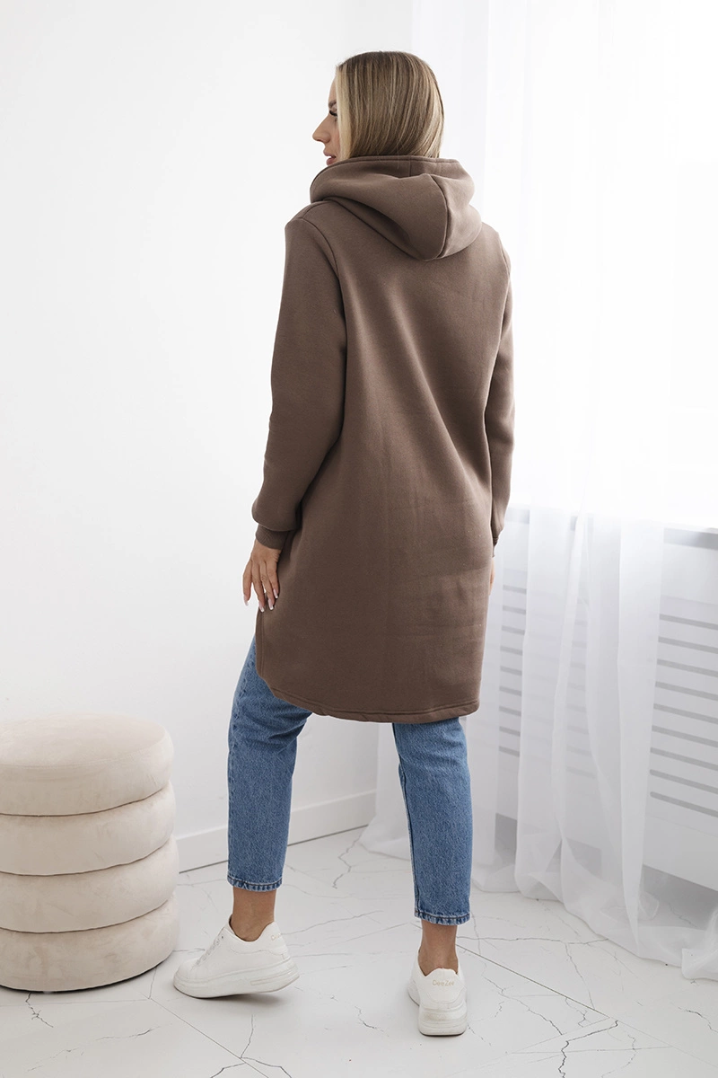We present you an insulated sweatshirt. The sweatshirt has a hood, longer back and a pocket. The sweatshirt is made of insulated material. The size is universal and will be suitable for ladies wearing sizes S, M or L.