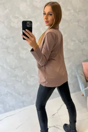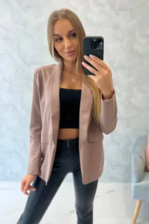 We present you a simple blazer. Jacket without fastening with lapels at the front. This model will be a great proposition for many types of figures, giving each styling an unforced elegance. It is the basis of every wardrobe and a styling element for special tasks – for every season and for every occasion. The jacket is made of high quality material. The jacket has no lining. The size is universal and will be suitable for ladies in sizes S, M and L