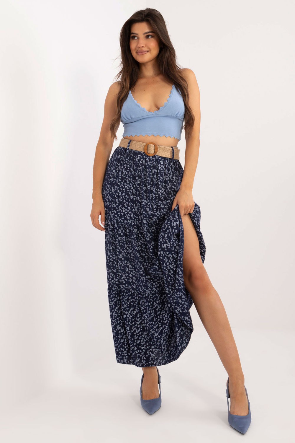 Αυτή η casual μάξι φούστα είναι η τέλεια επιλογή για καθημερινό στυλ. Κατασκευασμένη από κυρίαρχη βισκόζη, προσφέρει άνεση και αναπνοή καθ’ όλη τη διάρκεια της ημέρας. Το εντυπωσιακό φλοράλ print της προσθέτει μια φρέσκια και θηλυκή πινελιά, κάνοντας κάθε styling statement. Το βολάν στο κάτω μέρος προσθέτει μια ανάλαφρη και ρομαντική πινελιά, ενώ η ζώνη με αγκράφα τονίζει τη μέση για τέλεια εφαρμογή. Είναι η τέλεια επιλογή για συναντήσεις με φίλους, βόλτες ή ψώνια, συνδυάζοντας την άνεση με μια μοντέρνα εμφάνιση.