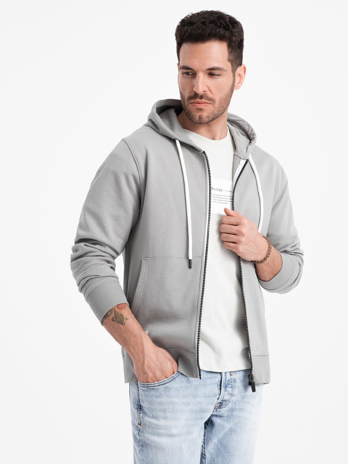 Unzipped hoodie is a timeless piece of everyday menswear. Freedom of wear is guaranteed by soft cotton with peach effect, thanks to which the sweatshirt is airy and pleasant to the touch. Eye-catching contrasting details add character, while a sturdy zipper allows the sweatshirt to be worn and fastened comfortably.