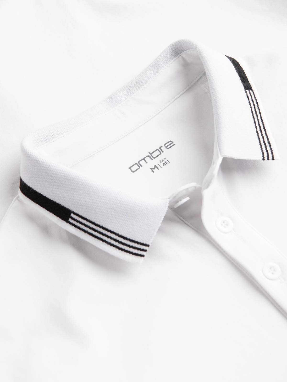 The timeless polo cut is made for active men who appreciate classic fashion solutions. It is an indispensable attribute of smart casual styling – you can wear it both to work and for casual outings. Contrasting embroidery with branding and stripes on the collar and sleeves bring to mind a sporty style. Cotton with added elastane makes the T-shirt crease-free and fits well on the body.