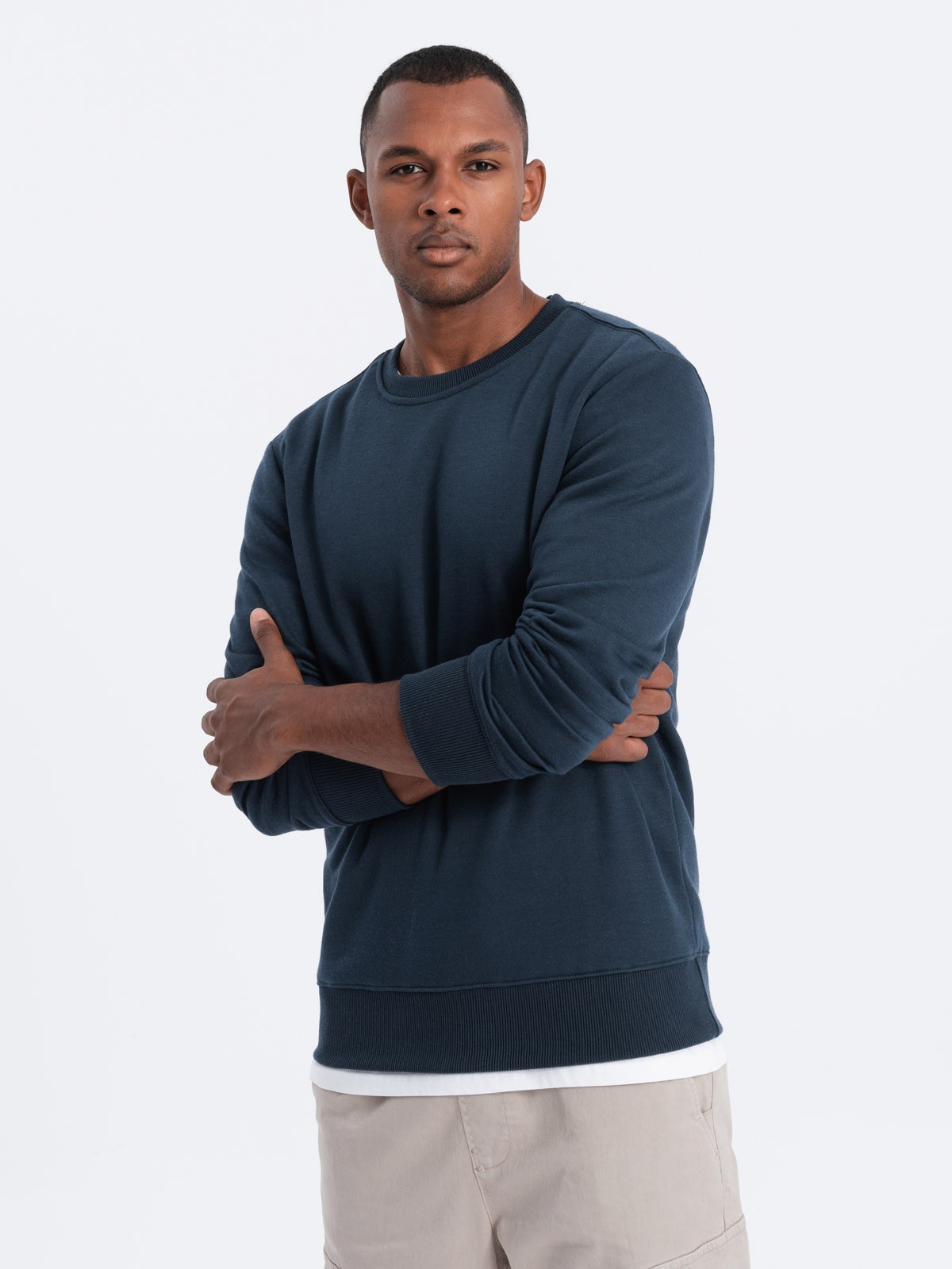 Men’s classic sweatshirt from basic collection. Put on over the head. Made of pleasant and soft material. Perfectly adapts to the figure. Round neckline. Bottom and sleeves of sweatshirt finished with welt. Comfortable cut makes the sweatshirt perfect for everyday wear.