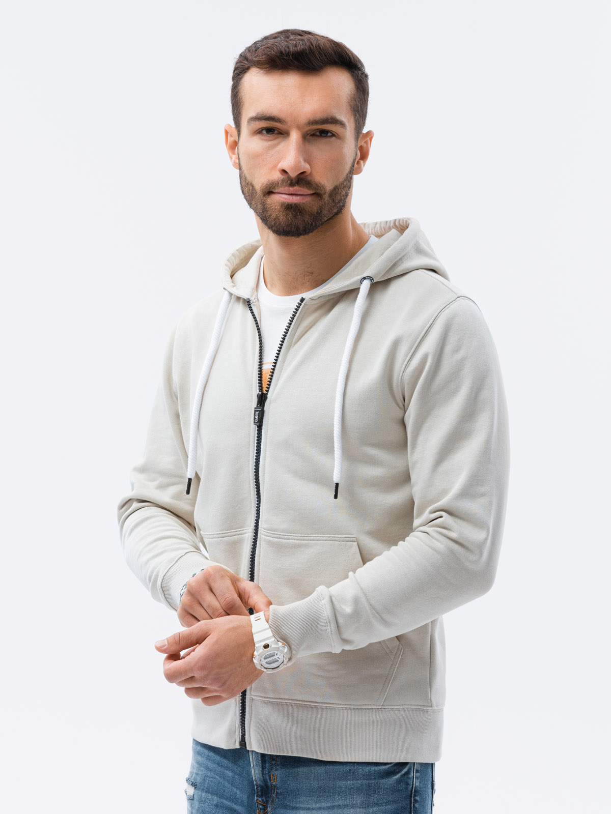 - The model presents the product in size: M