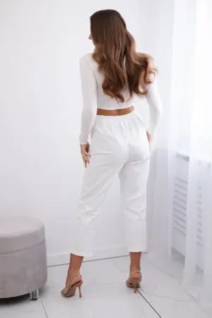 Punto trousers with decorative tapes are a stylish and expressive element of clothing that will add character to any look. Made of high-quality punto fabric, these trousers provide comfort and freedom of movement, perfect for everyday wear or special occasions. Decorative tapes placed on the pants give them a unique look and refined detail. This eye-catching detail makes the trousers not only a practical element of the wardrobe, but also a distinctive styling element, emphasizing the individual style and taste of the wearer. The size is universal and will be suitable for women wearing size S, M or L.