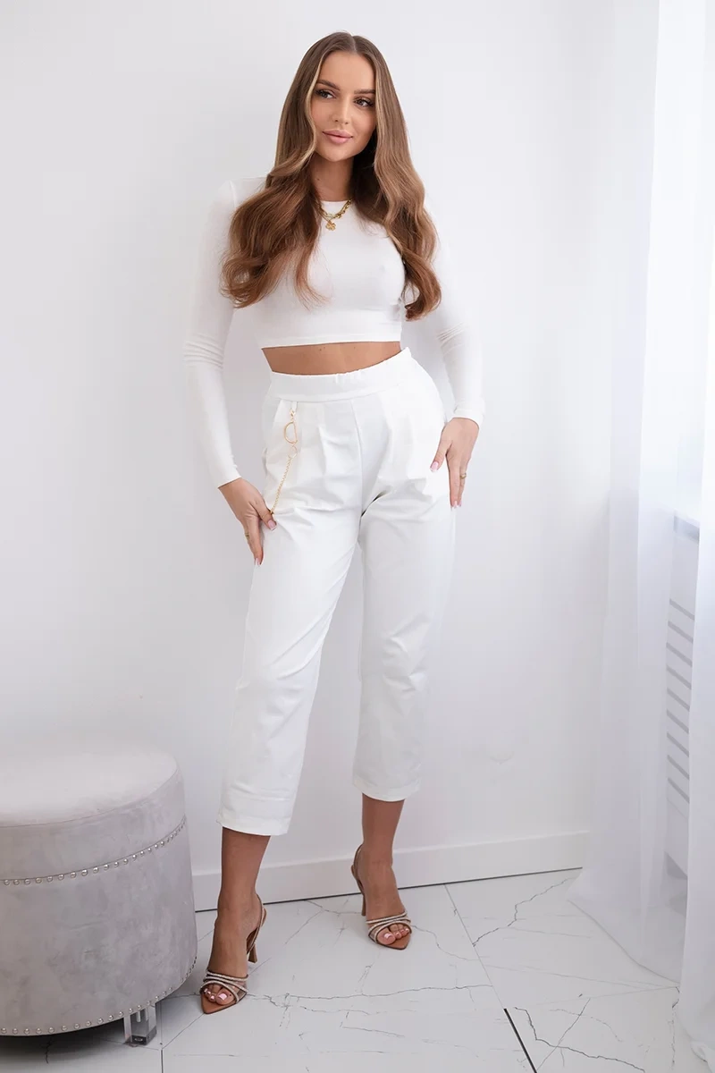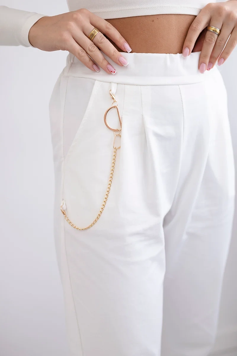 Punto trousers with decorative tapes are a stylish and expressive element of clothing that will add character to any look. Made of high-quality punto fabric, these trousers provide comfort and freedom of movement, perfect for everyday wear or special occasions. Decorative tapes placed on the pants give them a unique look and refined detail. This eye-catching detail makes the trousers not only a practical element of the wardrobe, but also a distinctive styling element, emphasizing the individual style and taste of the wearer. The size is universal and will be suitable for women wearing size S, M or L.