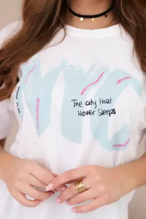 A cotton blouse with the “New York” print is a stylish and distinctive piece of clothing that expresses a certain lifestyle. Made of high-quality cotton, this blouse is both comfortable and fashionable. It can be a great way to express your love of travel, nature or culture. It is also a great wardrobe item for people looking for a stylish, casual look with a unique accent. The size is universal and will be suitable for women wearing size S, M or L.