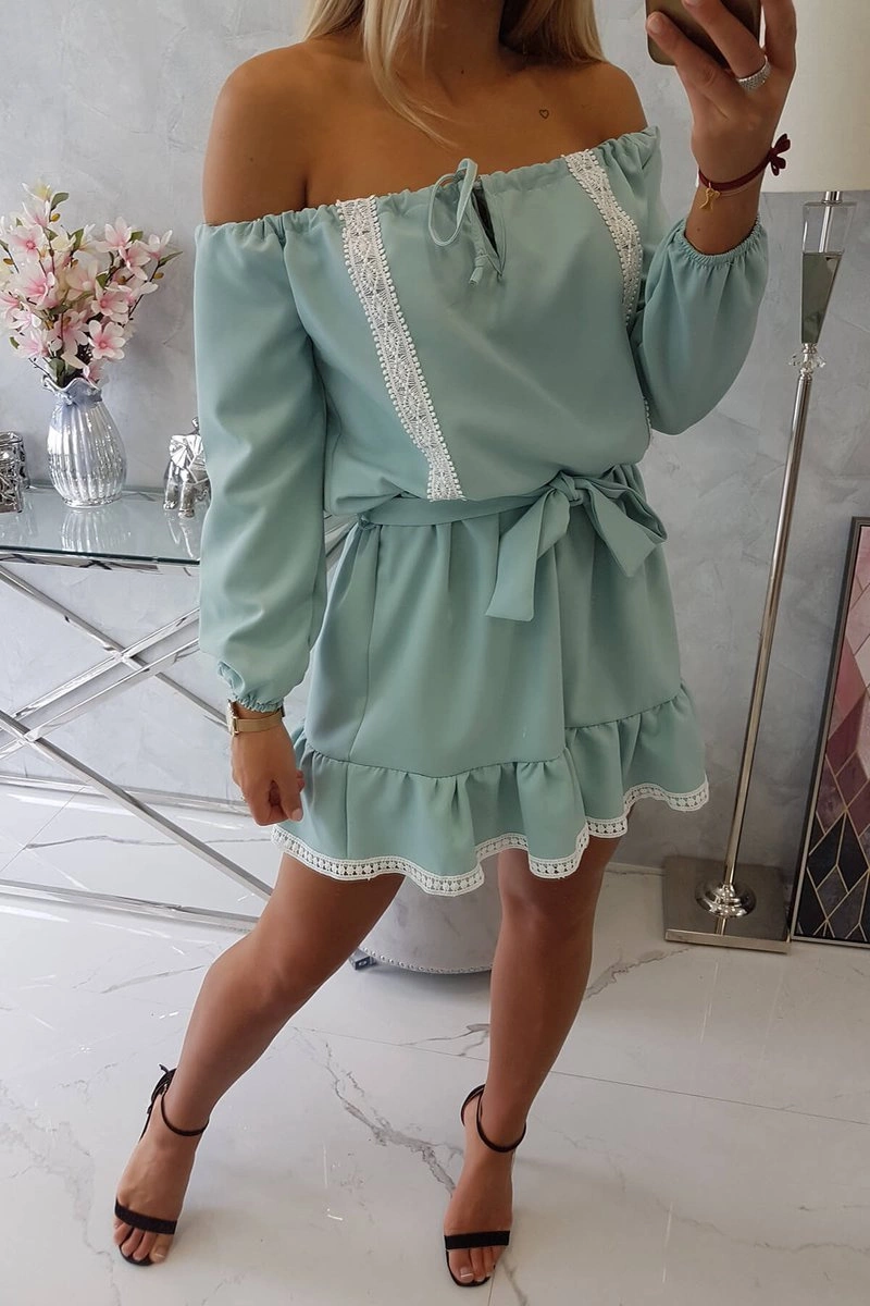 We present you a comfortable dress. Dress tied at the waist. Spanish dress with lace ribbon. Very fashionable cut. The dress is made of high quality material.