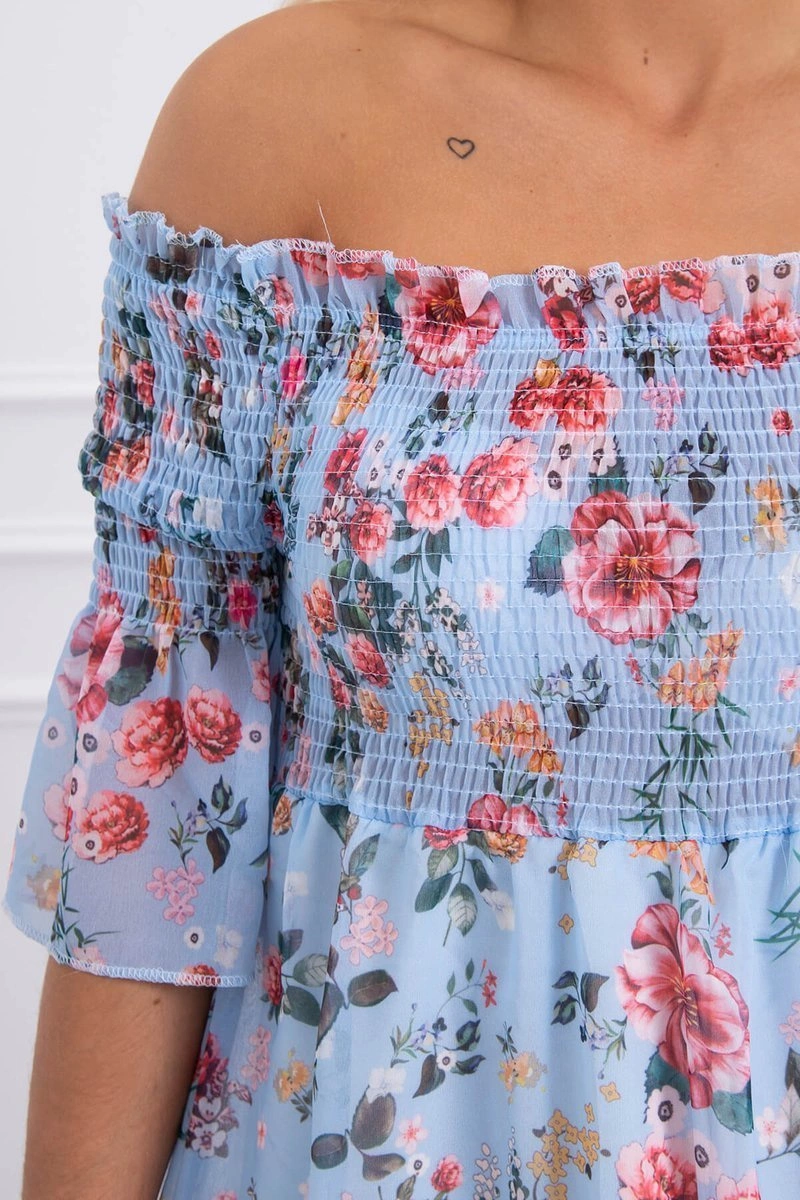 We present you a fashionable dress. Dress with bare shoulders, Spanish. Fashionable frills. An elastic sewn into the neckline. The dress is made of high quality material. The size is universal and will be suitable for ladies wearing sizes S, M or L.
