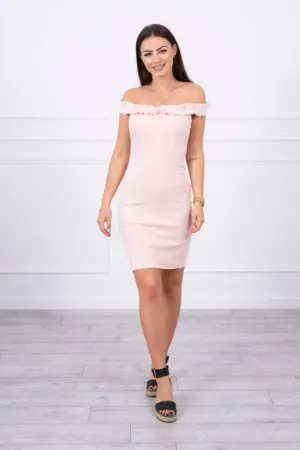 We present you a fashionable dress. Dress with bare shoulders, Spanish. Fashionable frills. Elastic sewn in neckline. The dress is made of high quality ribbed material. The size is universal and will be suitable for ladies wearing sizes S, M or L.
