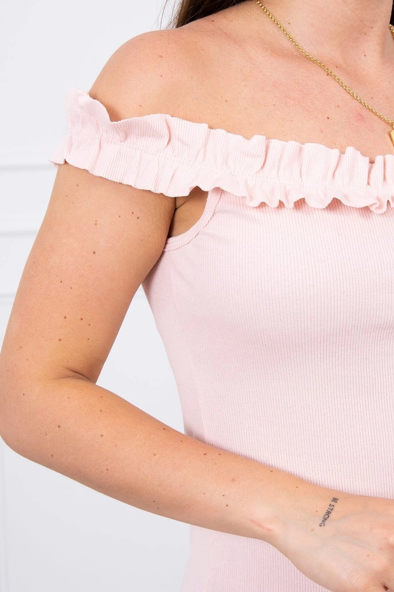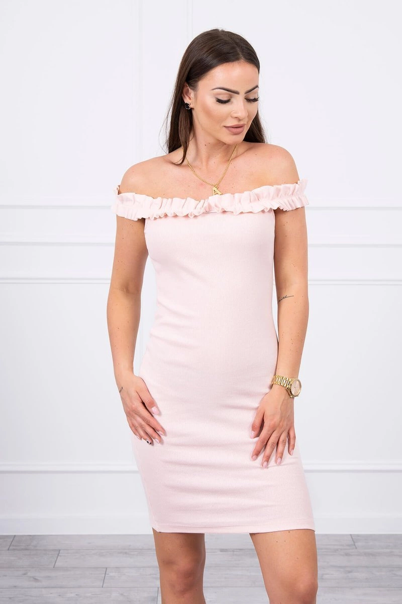 We present you a fashionable dress. Dress with bare shoulders, Spanish. Fashionable frills. Elastic sewn in neckline. The dress is made of high quality ribbed material. The size is universal and will be suitable for ladies wearing sizes S, M or L.