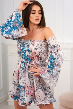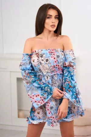 We present you a fashionable dress. Dress with bare shoulders, Spanish. Fashionable frills. Elastic sewn into the neckline and waist. The dress is made of high quality material. The size is universal and will be suitable for ladies wearing sizes S, M or L.