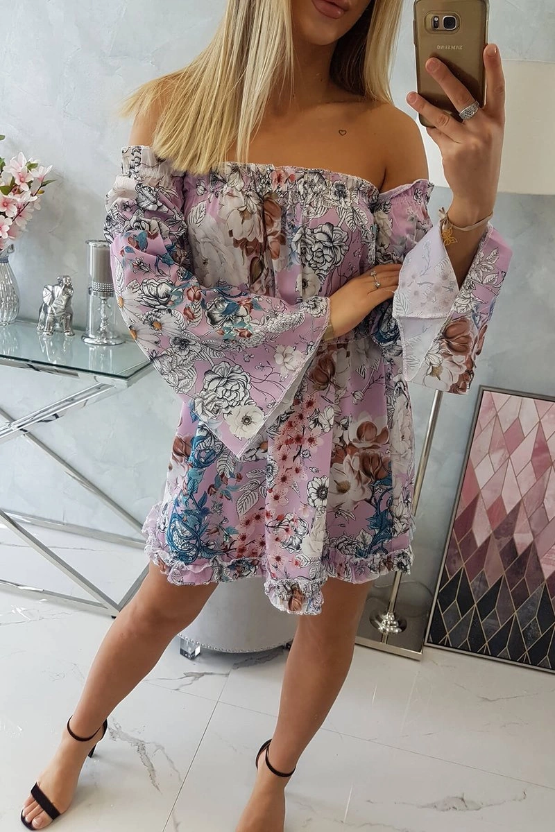 We present you a fashionable dress. Dress with bare shoulders, Spanish. Fashionable frills. Elastic sewn into the neckline and waist. The dress is made of high quality material. The size is universal and will be suitable for ladies wearing sizes S, M or L.
