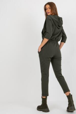 Γυναικεία ολόσωμη φόρμα με 3/4 μανίκια και κουκούλα. Ολόσωμη φόρμα με φερμουάρ και δέσιμο. Τσέπες στα πλάγια.