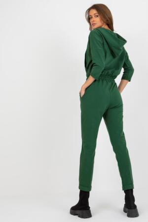 Γυναικεία ολόσωμη φόρμα με 3/4 μανίκια και κουκούλα. Ολόσωμη φόρμα με φερμουάρ και δέσιμο. Τσέπες στα πλάγια.
