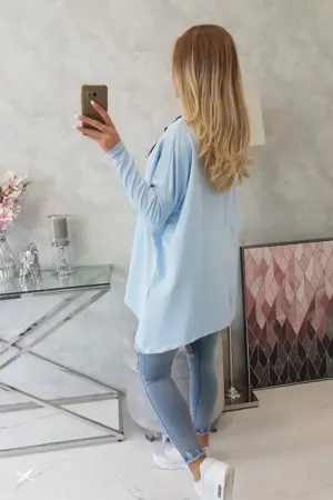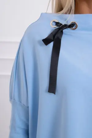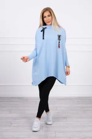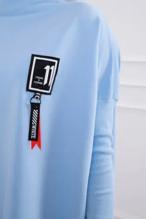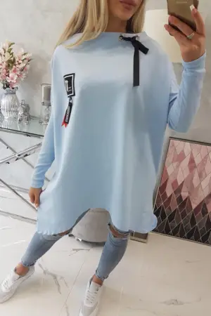 We present you a comfortable sweatshirt. The sweatshirt has longer sides. Decorative tape by the neck. Ribbed sleeves. The sweatshirt is made of high quality material. The size is universal and will be suitable for women wearing sizes M, L or XL.
