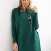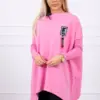 We present you a comfortable sweatshirt. The sweatshirt has longer sides. Decorative tape by the neck. Ribbed sleeves. The sweatshirt is made of high quality material. The size is universal and will be suitable for women wearing sizes M, L or XL.