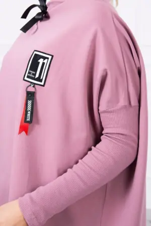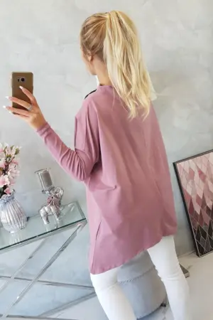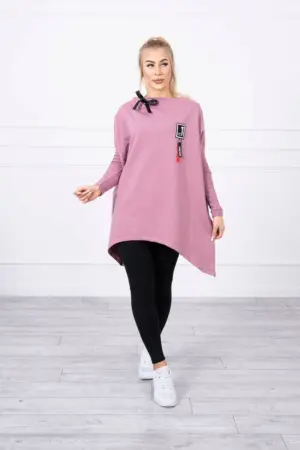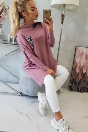 We present you a comfortable sweatshirt. The sweatshirt has longer sides. Decorative tape by the neck. Ribbed sleeves. The sweatshirt is made of high quality material. The size is universal and will be suitable for women wearing sizes M, L or XL.