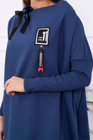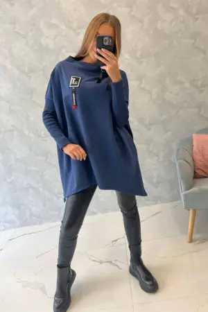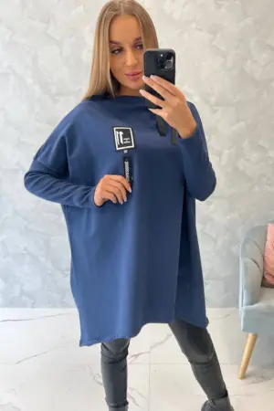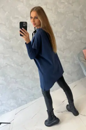 We present you a comfortable sweatshirt. The sweatshirt has longer sides. Decorative tape by the neck. Ribbed sleeves. The sweatshirt is made of high quality material. The size is universal and will be suitable for women wearing sizes M, L or XL.