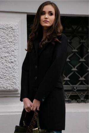 Μονόπετο παλτό με εφαρμοστό κόψιμο. Κλείσιμο με τρία κουμπιά και κλασικό γιακά. Διαθέτει επένδυση, πρακτικές τσέπες και διακοσμητικά στοιχεία με τη μορφή κουμπιών στα μανίκια. Πολωνική παραγωγή.