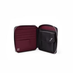 It’s small. It’s made of leather. It’s black. It fits in the tiniest purse and has compartments for everything. With Patricia mini wallet’s timeless design, you’ll find that’s all you need. The quality stitching in genuine leather ensures it will last you for years. The RFID lining also guarantees that all your data will be safe inside.