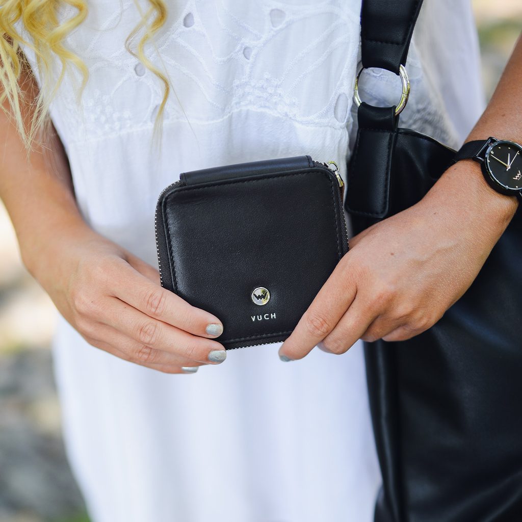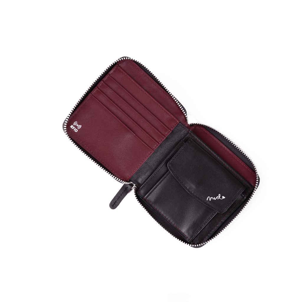It’s small. It’s made of leather. It’s black. It fits in the tiniest purse and has compartments for everything. With Patricia mini wallet’s timeless design, you’ll find that’s all you need. The quality stitching in genuine leather ensures it will last you for years. The RFID lining also guarantees that all your data will be safe inside.