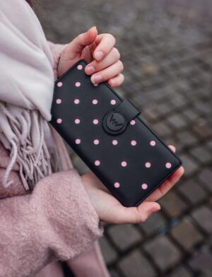 You’ll find a few polka dot wallets in our portfolio. We couldn’t help ourselves. In this case, we’ve put together two of our polka dot bestsellers, so this beauty is chic yet playful. If you’re hesitating about whether you’re grown up enough for a boring wallet, you’ll be quite the lady with this little partner.