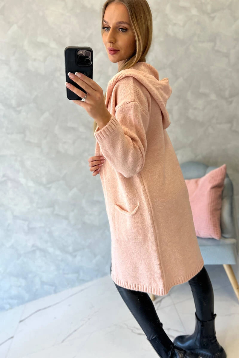 We present you a fashionable sweater. The sweater has a hood and pockets. Plain textured sweater. Very stylish, for each of the ladies. The sweater is made of high quality material. The size is universal and will be suitable for ladies in sizes M, L, XL.