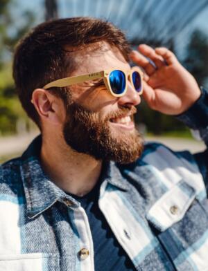 The bamboo rims match the tanned face perfectly. No matter if you’re heading to a sizzling beach, a hike in the mountains or a street bar for a cool drink. Throw on a pair of Pontanius polarized sunglasses and you’ll be super cool.