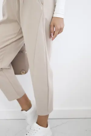 Punto Milano Winter trousers with pockets are a combination of comfort, functionality and style, ideal for colder days. Made of high-quality Punto Milano material, they provide warmth and comfort all day long. Practical pockets add functionality, allowing you to store small items. Their elegant cut works perfectly in both casual and more formal styles. These trousers are a versatile wardrobe element that combines a fashionable look with practicality and comfort of wearing. The size is universal and will be suitable for women wearing sizes S, M or L.