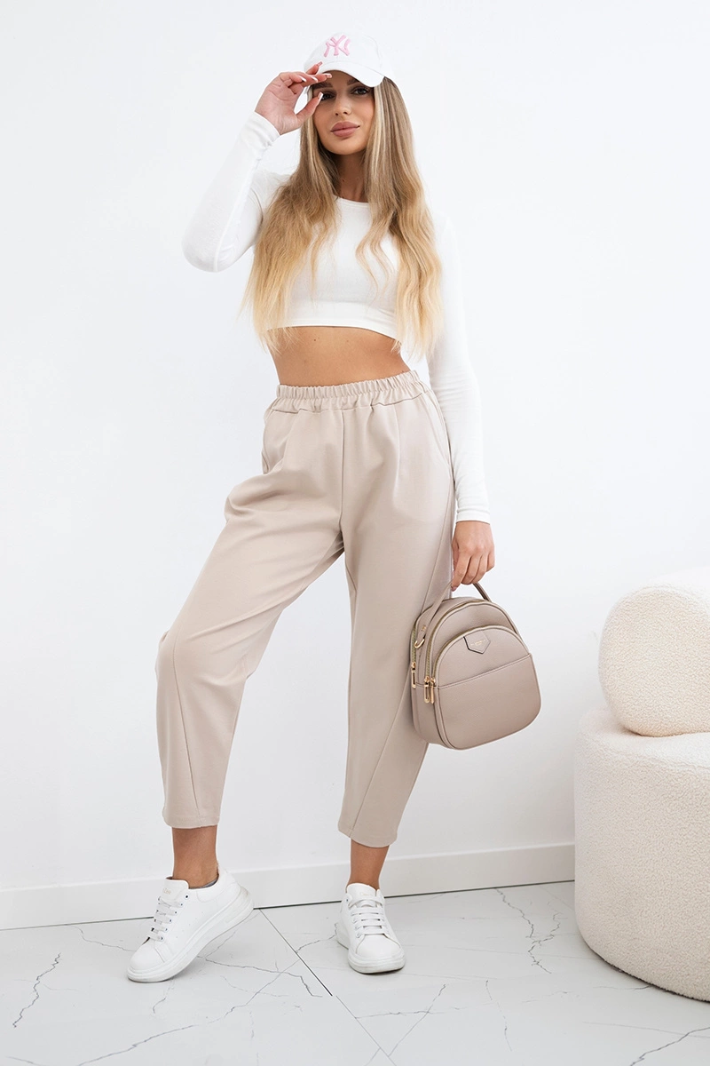 Punto Milano Winter trousers with pockets are a combination of comfort, functionality and style, ideal for colder days. Made of high-quality Punto Milano material, they provide warmth and comfort all day long. Practical pockets add functionality, allowing you to store small items. Their elegant cut works perfectly in both casual and more formal styles. These trousers are a versatile wardrobe element that combines a fashionable look with practicality and comfort of wearing. The size is universal and will be suitable for women wearing sizes S, M or L.