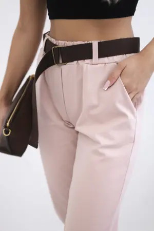 Punto trousers with a belt are a stylish and comfortable choice that combines elegance with functionality. Made of high-quality Punto material, they provide comfort and a perfect fit. The belt at the waist emphasizes the figure and adds a sophisticated character to the trousers. Perfect for both everyday outings and more formal occasions, these trousers are a versatile wardrobe element that allows you to create many fashionable styles. Punto trousers with a belt are a must-have for every woman who values elegance and comfort in one. The size is universal and will be suitable for women wearing sizes S, M or L.