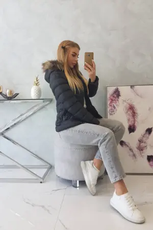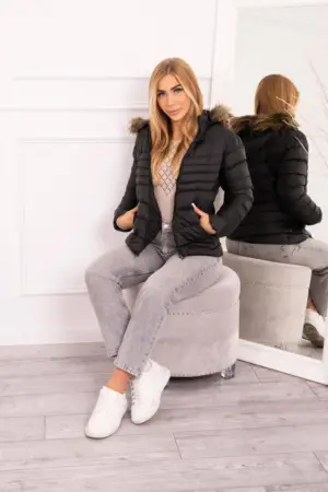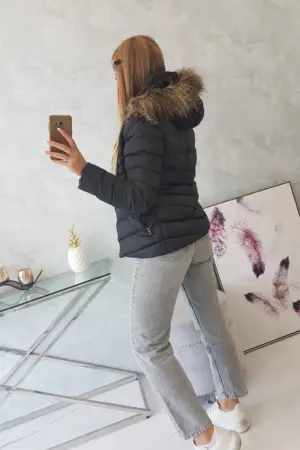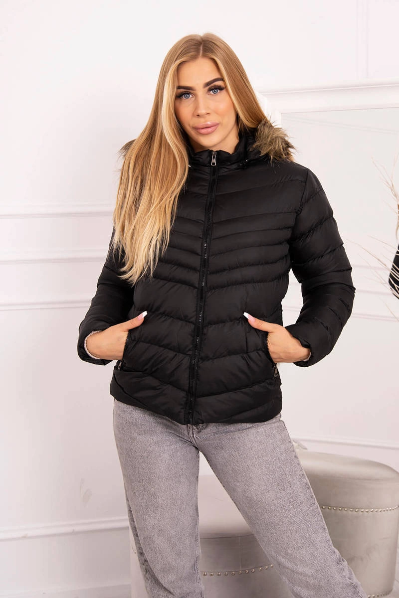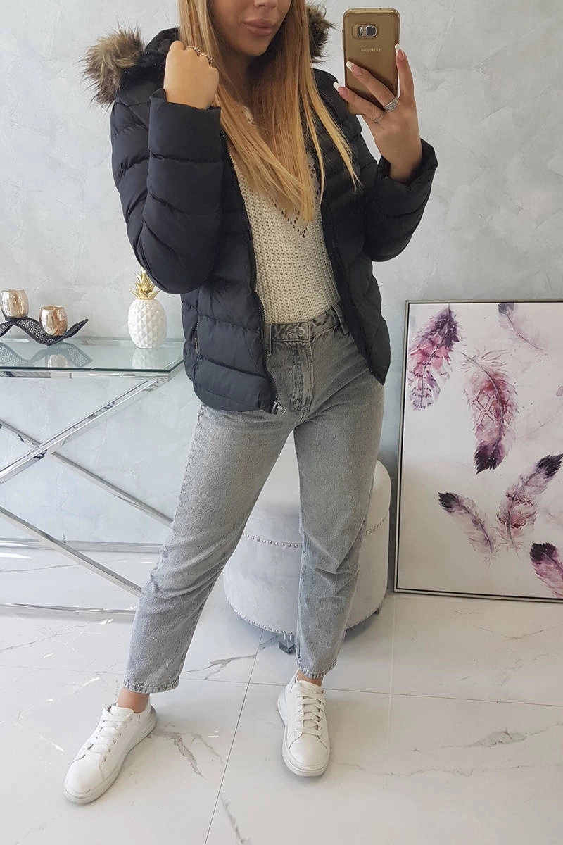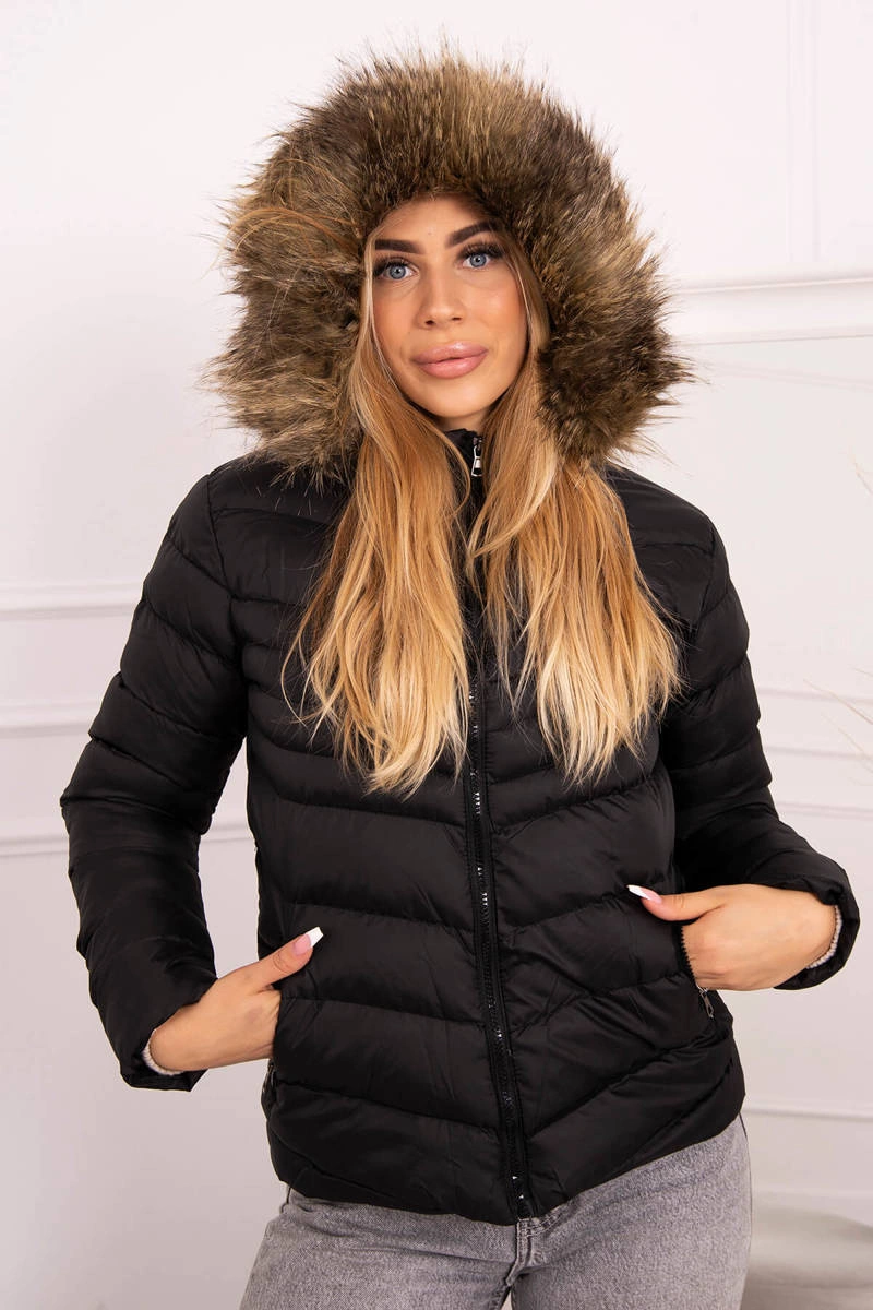 We present you a winter jacket with a hood. The hood is detachable, the fur is permanently sewn in. Quilted jacket fastened with a zipper. Pockets also fastened with a zipper. Warm and fashionable for winter days. Jacket available in sizes: S, M, L, XL, XXL.