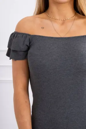 We present you a fashionable dress. The dress has frills on the shoulders. Dress fitted with ribbed material. The dress is made of high quality material. The size is universal and will be suitable for ladies wearing sizes S, M or L.