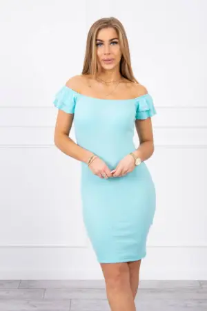 We present you a fashionable dress. The dress has frills on the shoulders. Dress fitted with ribbed material. The dress is made of high quality material. The size is universal and will be suitable for ladies wearing sizes S, M or L.