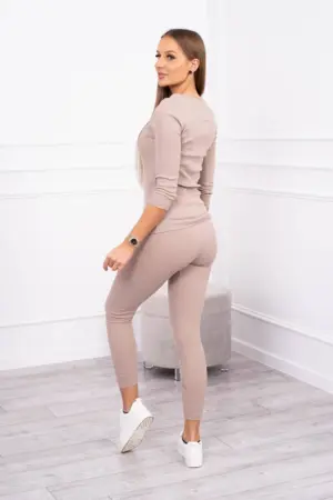 We present you a set of blouses with leggings. The blouse and leggings are made of ribbed material. The set is made of high-quality material. The size is universal and will be suitable for ladies in size S or M.