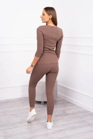 We present you a set of blouses with leggings. The blouse and leggings are made of ribbed material. The set is made of high-quality material. The size is universal and will be suitable for ladies in size S or M.