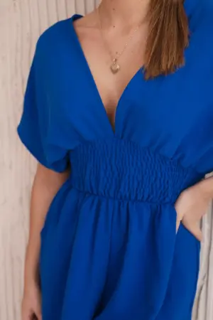 A ruffled waist jumpsuit is a unique piece of clothing that combines elegance and comfort. Its ruffled finish at the waist adds a feminine silhouette to the dress, emphasizing the waist and giving it a subtle charm. Made of high-quality materials, the suit ensures wearing comfort and freedom of movement. Perfect for a variety of occasions, from formal meetings to casual outings, this jumpsuit will make you look stylish and feel confident in any situation. The size is universal and will fit people in sizes S, M and L.