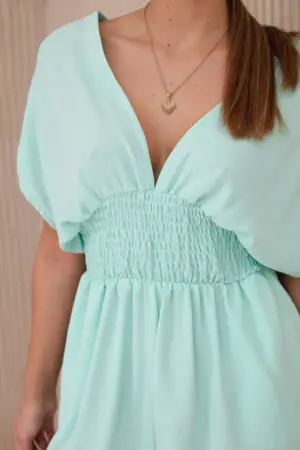 A ruffled waist jumpsuit is a unique piece of clothing that combines elegance and comfort. Its ruffled finish at the waist adds a feminine silhouette to the dress, emphasizing the waist and giving it a subtle charm. Made of high-quality materials, the suit ensures wearing comfort and freedom of movement. Perfect for a variety of occasions, from formal meetings to casual outings, this jumpsuit will make you look stylish and feel confident in any situation. The size is universal and will fit people in sizes S, M and L.